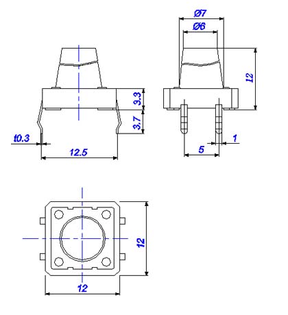 |  | | 型号规格:TS12H系列 | 中文命名:12*12插脚型轻触 |