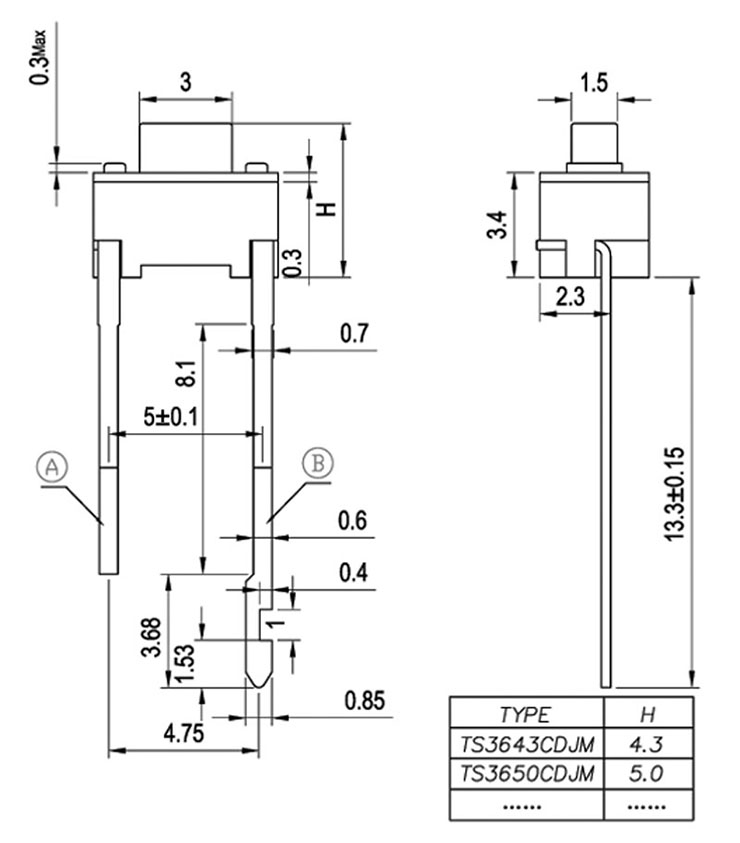 |  | | 型号规格:TS36HCDJM系列 | 中文命名:3*6轻触开关 |