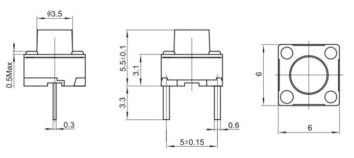 |  | | 型号规格:TS66HDJ-2系列 | 中文命名:6*6短两脚轻触 |