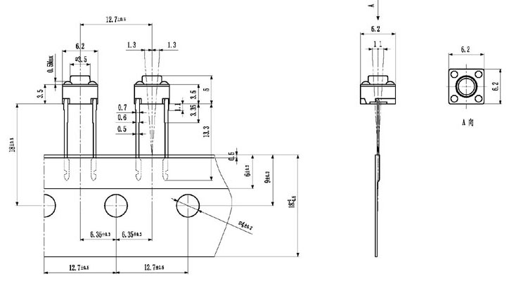 型号规格:TS66HSMD系列中文命名:6X6长二脚编带轻触开关