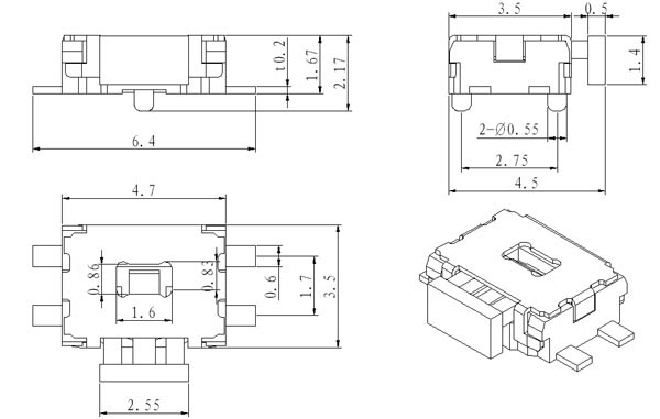 型号规格:TSG1175系列中文命名:中龟型防水轻触开关