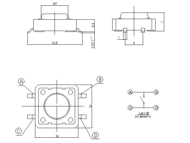 |  | | 型号规格:TSTP12H系列 | 中文命名:12*12贴片轻触开关 |