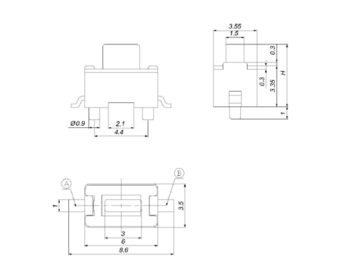 |  | | 型号规格:TSTP36HT系列 | 中文命名:3*6-贴片带定位轻触 |