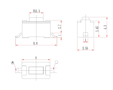 TSTP36434.3此产品为3*6贴片型轻触,材料采用的尼龙66/46,产品有方弹片和圆弹片两种,帽头和基座有不同的颜色。641-99