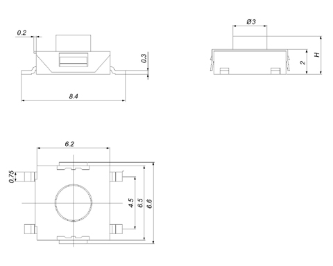 型号规格:TSTPHW系列中文命名:花盖贴片平座轻触开关