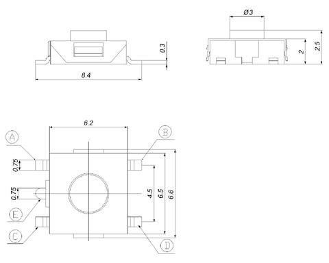 |  | | 型号规格:TSTPH系列 | 中文命名:五脚贴片平座轻触开关 |