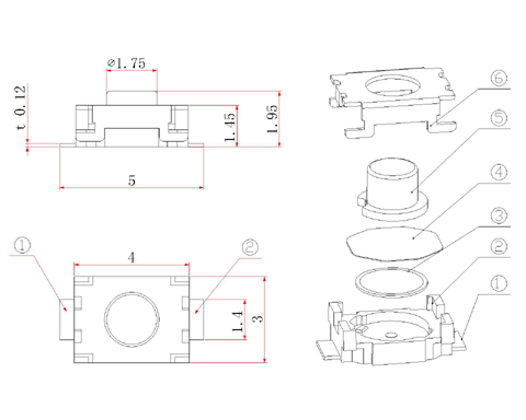 |  | | 型号规格:TSY3420-2T系列 | 中文命名:3x4轻触轻触开关 |
