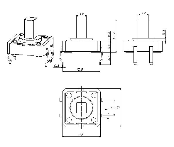 型号规格:TSZ12102系列中文命名:12*12长方按钮插脚型轻触