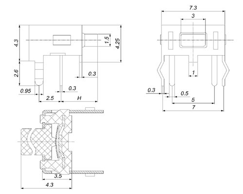 型号规格:TSZJ36H系列中文命名:3*6支架轻触开关