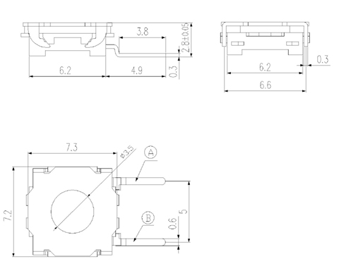 型号规格:WS027F系列中文命名:蓝防水无帽横二脚轻触