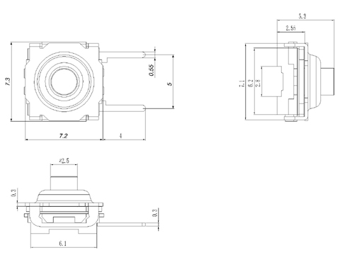 型号规格:WS050系列中文命名:050黑防水横二脚轻触