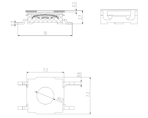 |  | | 型号规格:WSTP027系列 | 中文命名:蓝防水无帽贴片型轻触 |