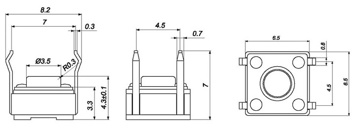 |  | | 型号规格:WSX6543W系列 | 中文命名:橡胶蓝帽反插型防水轻触开关 |