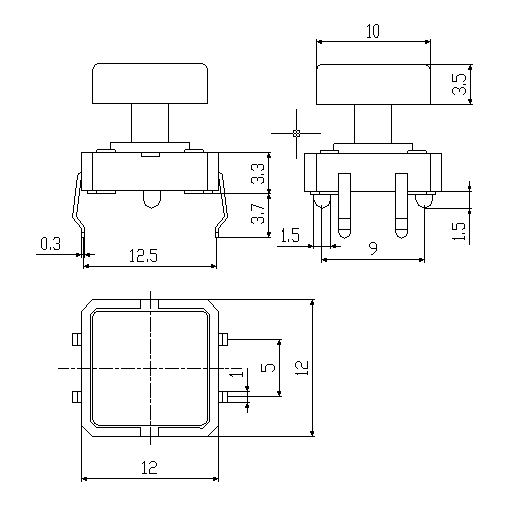 |  | | 型号规格:TS1273G1系列 | 中文命名:12*12加兰盖轻触 |