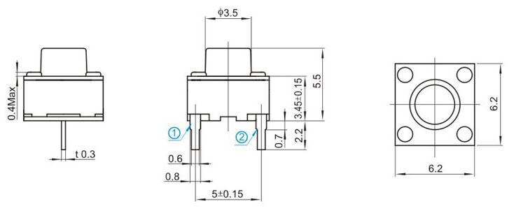 |  | | 型号规格:TS66HDJ-4系列 | 中文命名:6*6短两脚轻触(脚长2.2) |