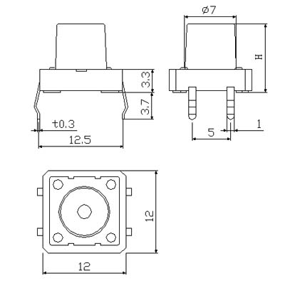 |  | | 型号规格:TSK12H系列 | 中文命名:12*12带孔帽插脚型轻触 |
