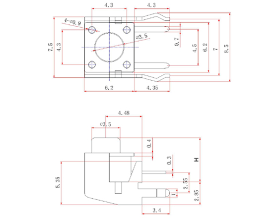|  | | 型号规格:TSZJ66H系列 | 中文命名:6x6支架轻触开关 |